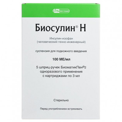 БИОСУЛИН Н 100МЕ/МЛ. 3МЛ. №5 СУСП. Д/П/К КАРТРИДЖ +ШПРИЦ-РУЧКА БИОМАТИКПЕН /ФАРМСТАНДАРТ-УФАВИТА/