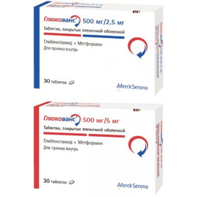 Глюкованс® представляет собой фиксированную комбинацию двух пероральных гипогликемических средств различных фармакологических групп: метформина и глибенкламида.