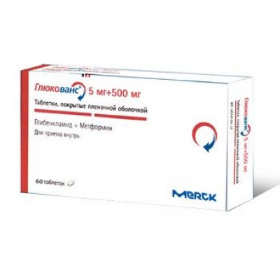 ГЛЮКОВАНС 500МГ+5МГ. №60 ТАБ. П/П/О /МЕРК/