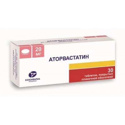 АТОРВАСТАТИН 20МГ. №30 ТАБ. П/П/О /КАНОНФАРМА/