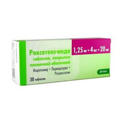 РОКСАТЕНЗ-ИНДА 1,25МГ+4МГ+20МГ. №30 ТАБ. П/П/О