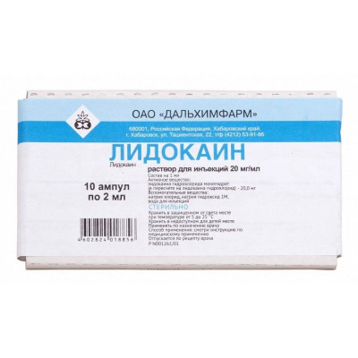 ЛИДОКАИН 20МГ/МЛ. 2МЛ. №10 Р-Р Д/ИН. АМП. /ДАЛЬХИМФАРМ/
