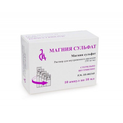 При введении магния сульфата необходимо иметь приготовленный для внутривенного введения раствор кальция, например, 10% раствор кальция глюконата.