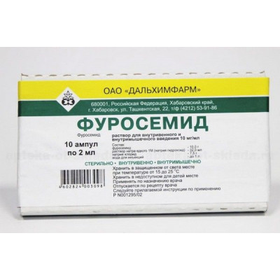 ФУРОСЕМИД 10МГ/МЛ. 2МЛ. №10 Р-Р Д/В/В,В/М АМП. /ДАЛЬХИМФАРМ/