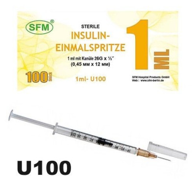СФМ ШПРИЦ ИНСУЛИН. 1МЛ. 3-Х КОМП. U-100 0,45Х12ММ G26 №100 [SFM]