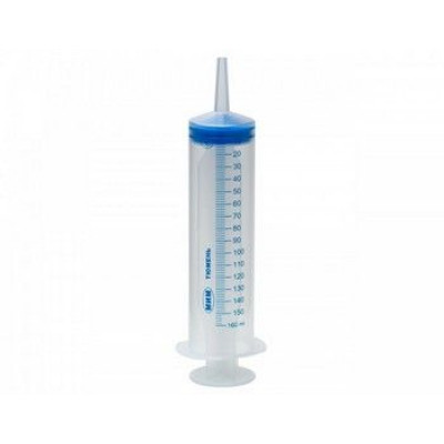 Шприц 150 мл трехдетальный. Резиновая манжета, покрытая силиконом, обеспечивает максимальную плавность хода. Материалы, из которых изготовлен шприц противоаллергичны. Изделие не содержит латекса. Тест по токсической и гигиенической, санитарной и химической характеристикам отвечает норме. Выдержаны все требования для медицинского изделия данного класса. Стерилизация окисью этилена.