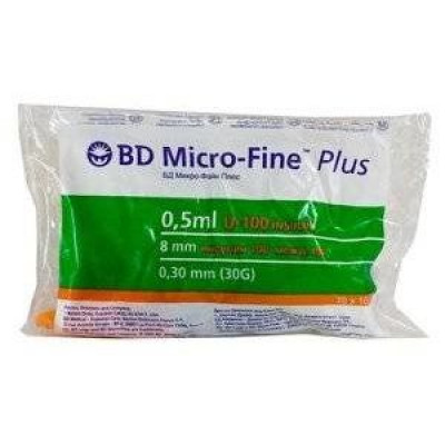 ШПРИЦ ИНСУЛИН. БД МИКРО ФАЙН+ 0,5МЛ. U-100 30G 0,3Х8 Н/СЪЕМН. №10 [BD MICRO FINE]