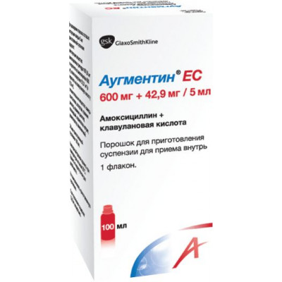 АУГМЕНТИН ЕС 600МГ.+42,9МГ/5МЛ. 23,13Г. 100МЛ. №1 ПОР. Д/СУСП. ФЛ. /ГЛАКСО/