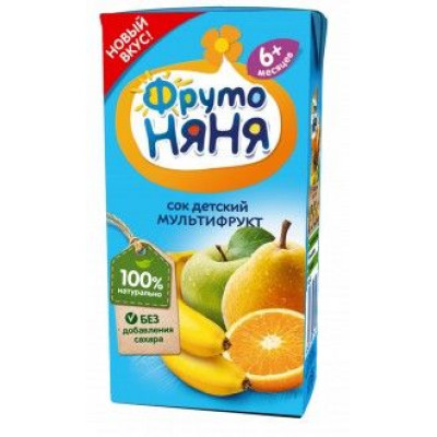 ФРУТОНЯНЯ НЕКТАР (СОК) 200МЛ. МУЛЬТИФРУКТ МЯК. Б/САХ. 6+МЕС.