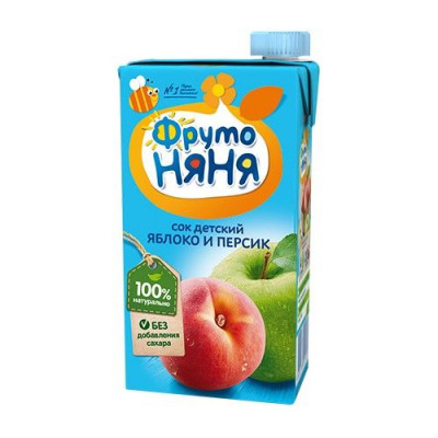 ФрутоНяня сок яблочно-персиковый неосветленный для детского питания детей дошкольного и школьного возраста.