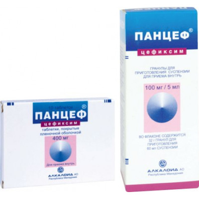 Внутрь. -Для взрослых и детей старше 12 лет массой тела более 50 кг рекомендуемая суточная доза составляет 400 мг 1 раз/сутки или по 200 мг 2 раза в сутки. При острой неосложненной гонорее - 400 мг однократно. -Детям в возрасте от 6 месяцев до 12 лет массой тела менее 50 кг препарат назначают в виде суспензии в дозе 8 мг/кг массы тела 1 раз/сутки или по 4 мг/кг 2 раза в сутки (каждые 12 ч). Средняя продолжительность лечения - 7-10 дней. При инфекциях, вызванных Streptococcus pyogenes, курс лечения должен составлять не менее 10 дней. Для дозирования препарата следует использовать мерный колпачок или дозировочный шприц, которые необходимо хорошо промывать водой после каждого применения. Дозировочный шприц используется исключительно для дозирования суспензии препарата Панцеф и не должен применяться для другого лекарственного средства. -Дозирование препарата мерным колпачком Для взрослых и детей старше 12 лет массой тела более 50 кг рекомендуется использовать мерный колпачок — 20 мл (400 мг) 1 раз в сутки или по 10 мл (200 мг) 2 раза в сутки. Из-за разности в биодоступности суспензию не рекомендуется заменять таблетками. -При нарушении функции почек дозу устанавливают в зависимости от показателя клиренса креатинина в сыворотке крови: при клиренсе креатинина 21-60 мл/мин или у пациентов, находящихся на гемодиализе, суточную дозу следует уменьшить на 25 0/0; при клиренсе креатинина 20 мл/мин и менее или у пациентов, находящихся на перитонеальном диализе, суточную дозу следует уменьшить в 2 раза. Способ приготовления 60 мл суспензии: Суспензию готовят непосредственно перед первым применением. Флакон встряхнуть несколько раз. Мерным колпачком добавить 40 мл охлажденной до комнатной температуры кипяченой воды по следующей схеме: 1.добавить 20 мл и энергично взболтать; 2.добавить еще 20 мл и энергично взболтать до образования гомогенной суспензии. Способ приготовления 100 мл суспензии: Суспензию готовят непосредственно перед первым применением. Флакон встряхнуть несколько раз. Мерным колпачком добавить 66 мл охлажденной до комнатной температуры кипяченой воды по следующей схеме: 1.добавить 33 мл и энергично взболтать; 2.добавить еще 33 мл и энергично взболтать до образования гомогенной суспензии. Перед применением готовую суспензию следует хорошо взболтать.