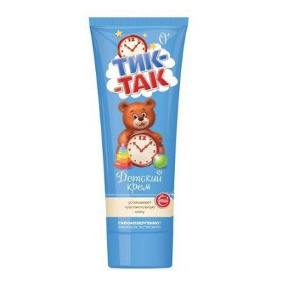 Крем детский quot;Тик-Такquot; для чувствительной кожи. Детский крем: имеет достаточно плотную жирную консистенцию, быстро впитывается, цвет нежный, не яркий желтый, нейтральный легкий аромат травяного направления.