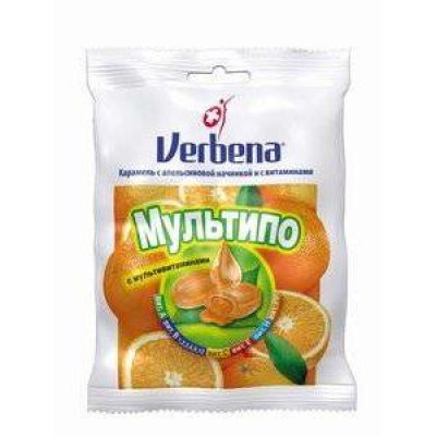 Действие Verbena Мультипо определяется свойствами входящих в её состав витаминов А, B1, B2, B6, B12, С, Е, ниацина, пантотеновой кислоты, фолиевой кислоты, биотина и апельсинового сока. Особая технология производства, при которой начинка варится отдельно, при более низких температурах, чем леденцовая основа, позволяет сохранить большее количество полезных экстрактов.