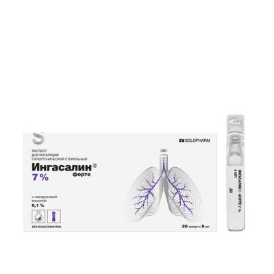 ИНГАСАЛИН ФОРТЕ 7% 5МЛ. №30 Р-Р Д/ИНГ. ГИПЕРТ. СТЕР. АМП. /СОЛОФАРМ/
