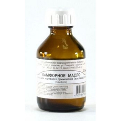 Активное вещество: Камфора или Камфора синтетическая - 100 г. Вспомогательное вещество: Подсолнечное масло - до 1 л.