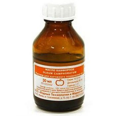 Действующее вещество: Камфоры 100 г. Вспомогательное вещество: Масла подсолнечного рафинированного до 1л.