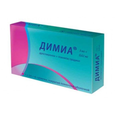 Препарат Димиа® является комбинированным монофазным пероральным контрацептивным средством (КОК), содержащим дроспиренон и этинилэстрадиол. По своему фармакологическому профилю дроспиренон близок к натуральному прогестерону — не обладает эстрогенной, глюкокортикоидной и антиглюкокортикоидной активностью и характеризуется выраженным антиандрогенным и умеренным антиминералокортикоидным действием. Контрацептивный эффект основывается на взаимодействии различных факторов, важнейшими из которых являются торможение овуляции, увеличение вязкости секрета шейки матки и изменение эндометрия. Индекс Перля — показатель, отражающий частоту наступления беременности у 100 женщин репродуктивного возраста в течение года применения контрацептива — менее 1.