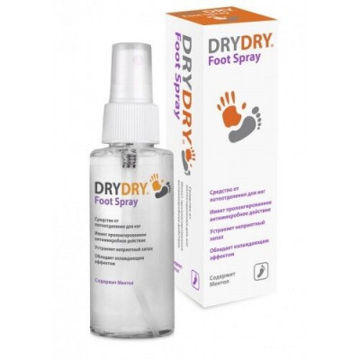 Избегайте контакта DRYDRY Foot Spray с глазами. В случае попадания средства в глаза, промойте большим количеством воды. Только для наружного применения.