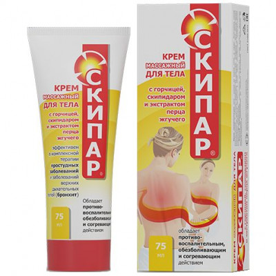 Крем массажный СКИПАР на основе живичного скипидара эффективен в комплексной терапии: простудных заболеваний, заболеваний верхних дыхательных путей (бронхит), стимулирует обменные процессы в коже, способствует предупреждению вялости и дряблости кожи, обладает противовоспалительным, обезболивающим и согревающим действием. Уктивные компоненты: живичный скипидар, горчица и экстракт жгучего