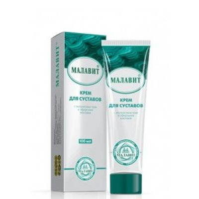 Крем для суставов «Малавит», насыщенный витаминами, антиоксидантами и биологически активными веществами, предназначен для наружного применения в составе профилактики и комплексного лечения различных заболеваний опорно-двигательного аппарата (артриты, подагра (отложение солей), артрозы, спондилоартрит, остеохондроз, Болезнь Бехтерева, тендовагиниты, бурситы и др.), а также может применяться в комплексном лечении последствий различных травм (растяжения связок, ушибы, вывихи и др.).