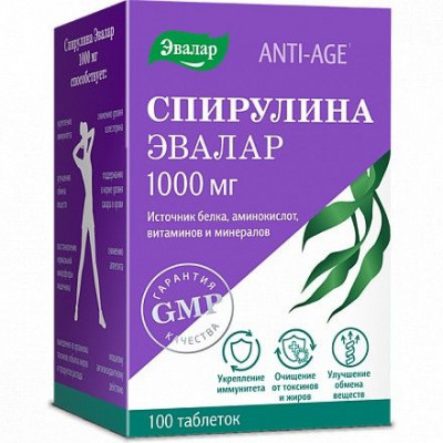 АНТИ-ЭЙДЖ СПИРУЛИНА 1000МГ. №100 ТАБ. /ЭВАЛАР/ [ANTI-AGE]