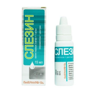 Лекарственный препарат Слезин - искусственная слеза. Содержит водорастворимую полимерную систему, которая, взаимодействуя с естественной слезной жидкостью глаза, улучшает увлажнение роговицы, обеспечивая гидрофильность поверхности роговицы за счет обычных процессов адсорбции на границе раздела пленки слезной жидкости и поверхности роговицы. Препарат физиологически смешивается с пленкой слезной жидкости, повышая ее стабильность на поверхности роговицы.