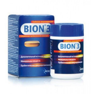 Содержит три особым образом подобранные живые пробиотические культуры природного происхождения, а также дневную норму необходимых организму витаминов, важнейшие минеральные вещества и микроэлементы, которые в течение длительного времени поддерживают естественное равновесие кишечной микрофлоры. Это улучшает физиологическое состояние кишечника и его функционирование как защитного барьера от патогенной микрофлоры, способствуя хорошему самочувствию и увеличивая иммунные силы организма. Благодаря особой технологии производства пробиотические культуры в таблетке БИОН® 3 защищены от воздействия соляной кислоты, желчных кислот и ферментов верхних отделов ЖКТ и в большом количестве живыми попадают в кишечник, где начинается их полезное воздействие. Постоянная поддержка защитных сил организма при помощи витаминов и микроэлементов, таких как витамины А, С и Е, а также цинк, железо и селен, делает организм более выносливым и позволяет ему лучше справляться с патогенными микроорганизмами. Достаточное количество витаминов также способствует скорейшему выздоровлению. Большинство необходимых витаминов/микроэлементов организм не может образовывать сам. Они должны быть получены с пищей. Пищевая добавка БИОН® 3 обеспечивает организм всеми витаминами и минералами. БИОН® 3 рекомендуется принимать в течение всего года. Следует помнить, что БАД не является полноценной заменой сбалансированного и разнообразного питания.