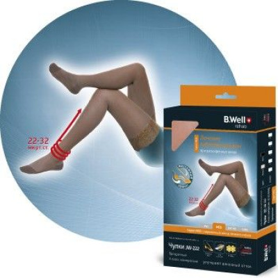 Чулки компрессионные с ажурным верхом B.Well rehab JW-222 II класс компрессии: 22-32 мм рт. ст. для улучшения венозного оттока при заболеваниях вен, хронической венозной недостаточности, для профилактики тромбоза глубоких вен.