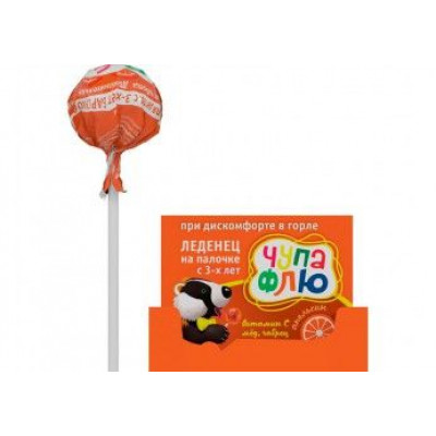 БАРСУКОР ЧУПА-ФЛЮ ЛЕДЕНЕЦ НА ПАЛОЧКЕ Д/ГОРЛА АПЕЛЬСИН 3+ 10Г. №1